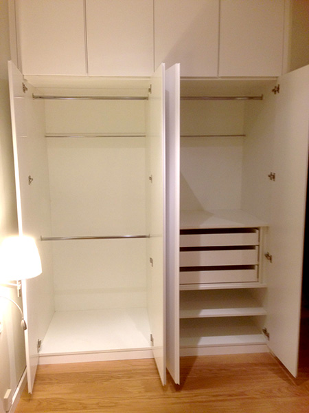 ene 22, 2016 Armarios Armario ropero empotrado para dormitorio con puertas practicables lacadas en blanco con uñero. Instalación en Esplugues de Llobregat