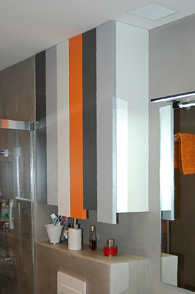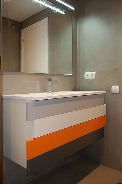 may 6, 2016 Baños Mueble de baño a medida suspendido combinado en melaminas de color con cajones de extracción total con freno y módulo auxiliar con dos puertas. Instalación en Gavà Mar